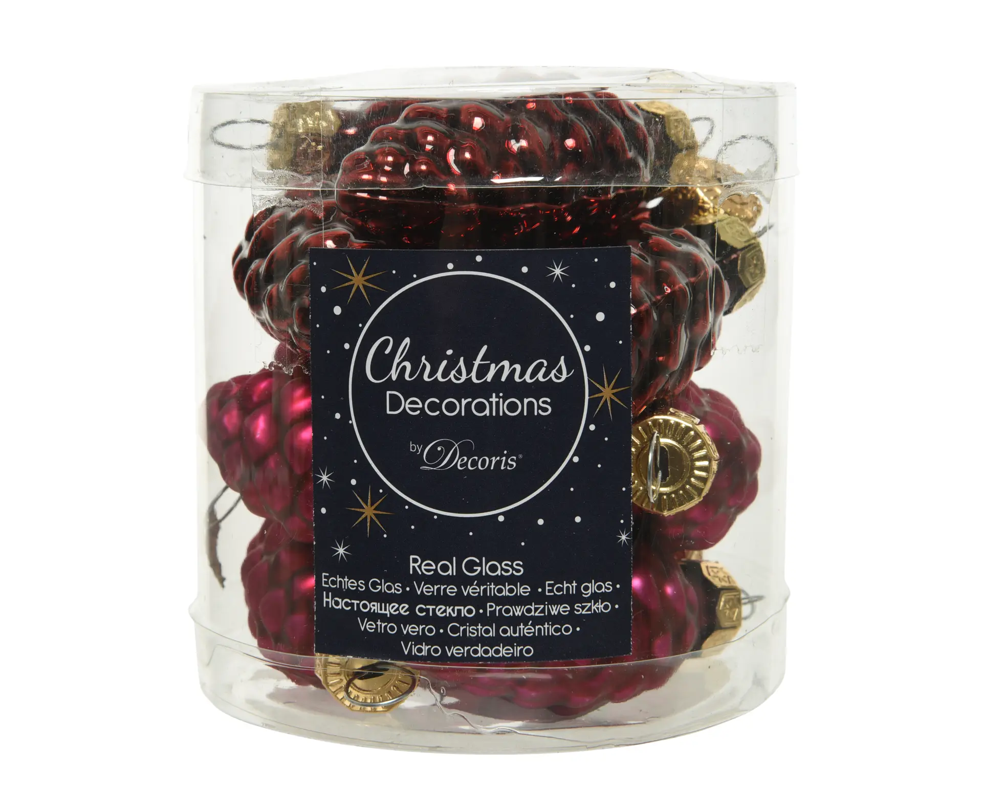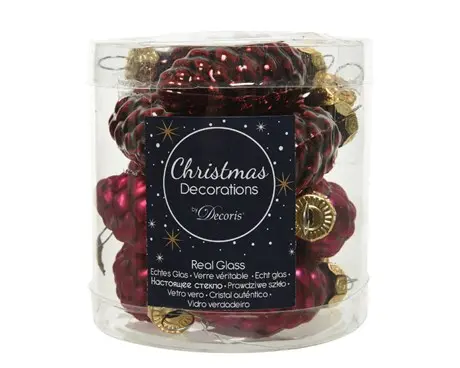 DENNENAPPEL GLAS SHINY MATT MIX D2.5H.6CM OSSENBLOED