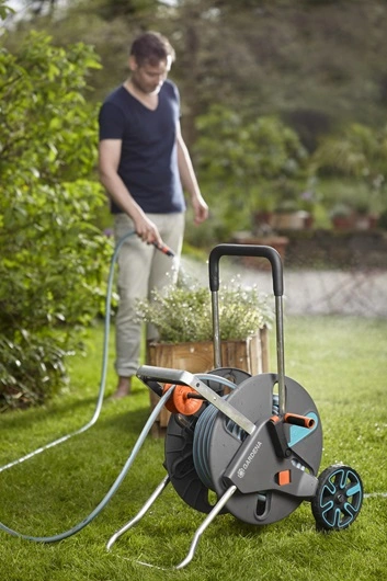 De Gardena AquaRoll is handig in gebruik en zorgt voor ruimtebesparende opslag van de tuinslang.