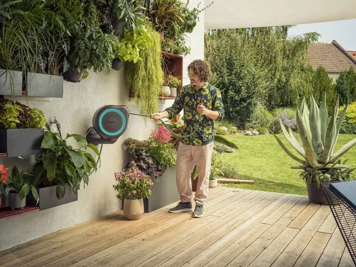 Maak de tuin bewateren gemakkelijk door de wandslangenbox van Gardena te gebruiken.