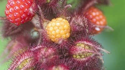 De Japanse Wijnbes is een frisse, zoetzure framoosachtige vrucht.Tuinland Assen (5)