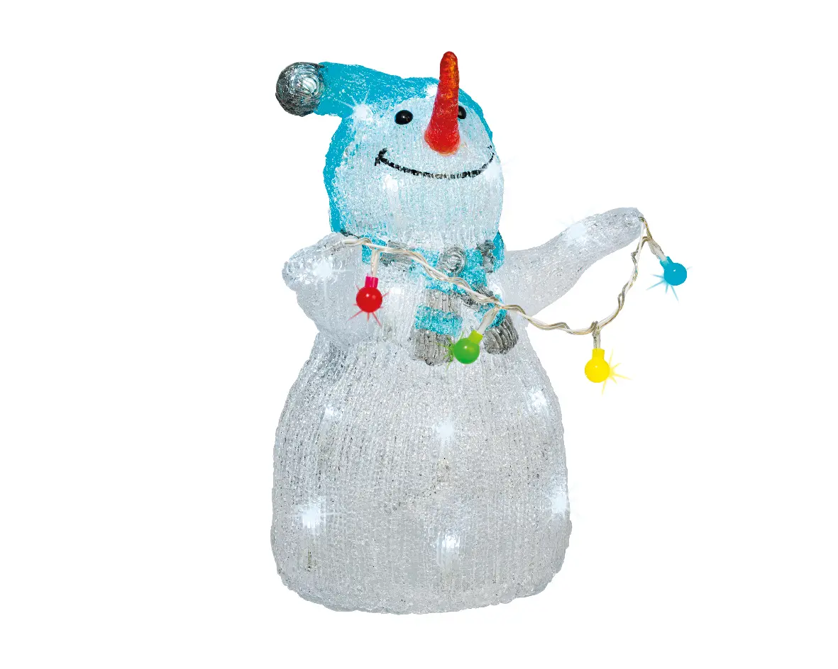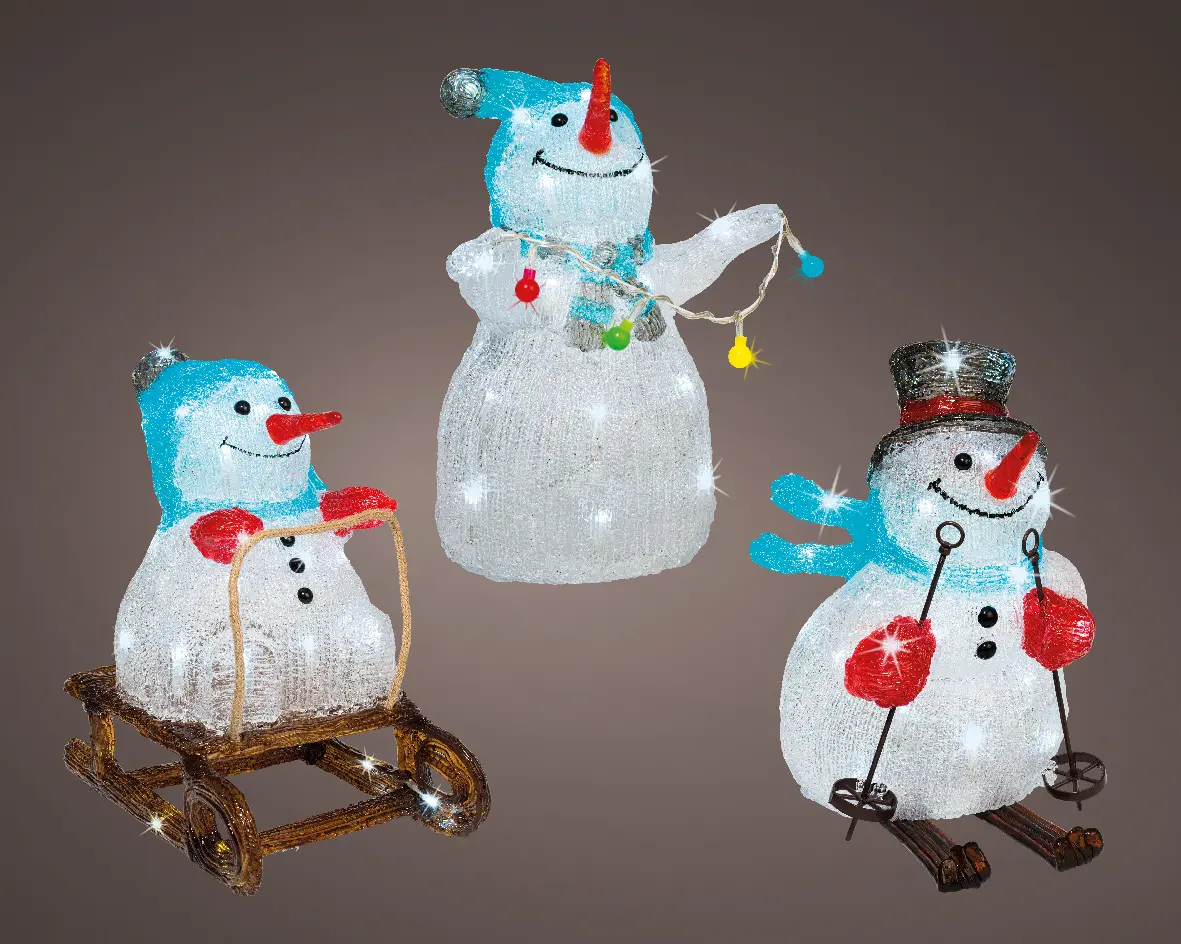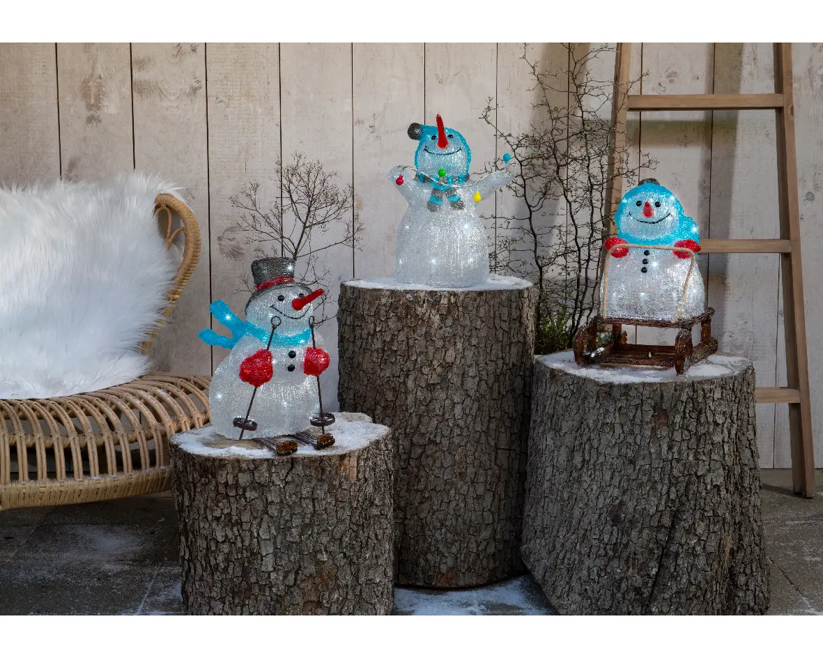 LED SNEEUWPOP ACRYL SKIING/SLEDDING/STEADY BO L.21.5W.29.5H.32CM ASS./KOEL WIT