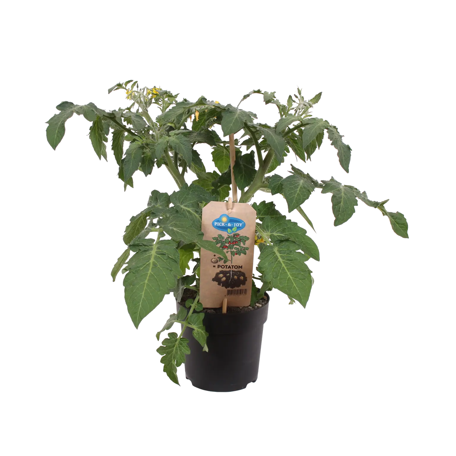 De Pick-&-Joy® aardappeltomaat (hoogte 30-40 cm, potmaat 13) produceert kleine tomaatjes die qua vorm lijken op aardappeltjes. Deze bijzondere tomaatjes zijn smaakvol en een leuke toevoeging aan je moestuin.