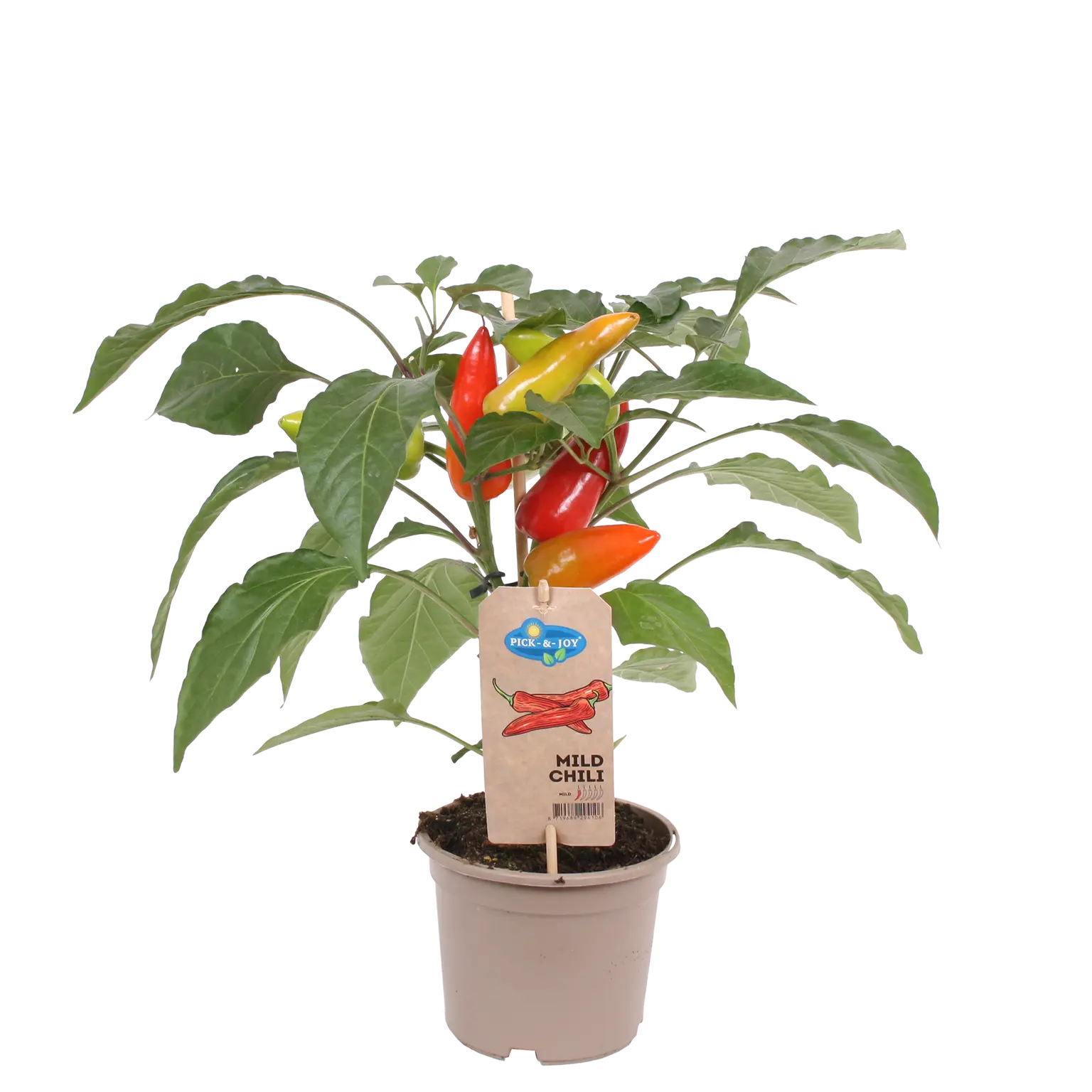 Met de Pick-&-Joy® milde peper (hoogte 45 cm, potmaat 14) haal je een compacte plant in huis die milde, rode pepers produceert. Ideaal voor wie wil genieten van peperige smaak zonder de scherpe hitte.