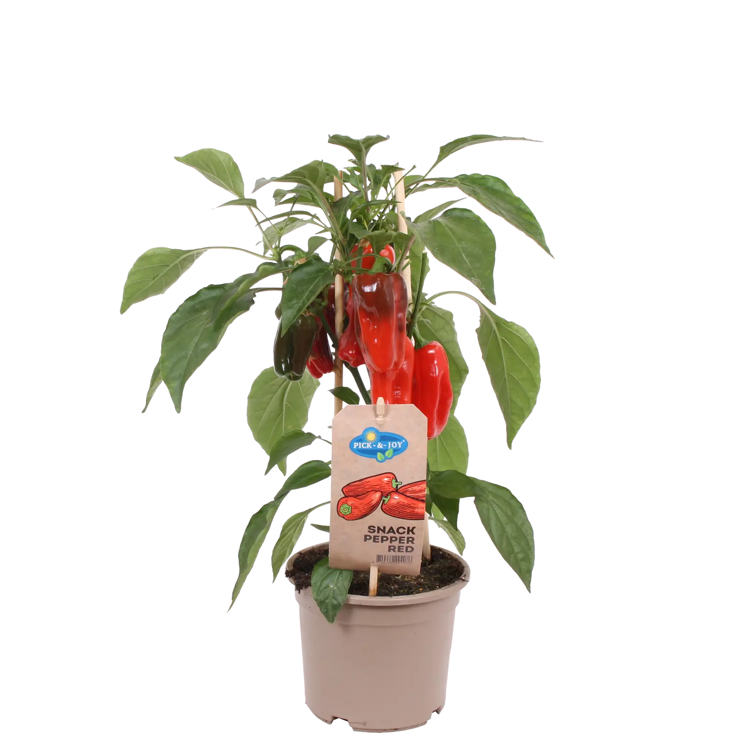De Pick-&-Joy® snackpaprika rood (hoogte 45 cm, potmaat 14) is een compacte plant die sappige, zoete rode snackpaprika’s produceert. Ideaal voor gezonde tussendoortjes en verse gerechten.